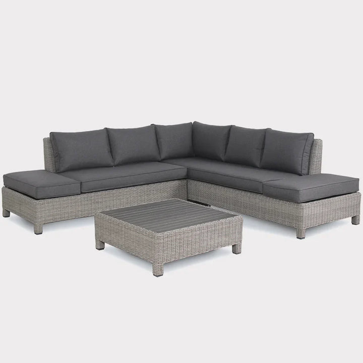 Spread out on the stylish Palma Signature Low Lounge set, which is durable, comfortable and easy to clean. This contemporary set includes a 5-seat corner lounger, with plush, waterproof cushions and a square aluminium slat coffee table.