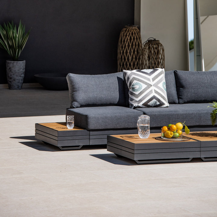 The three way modular sofa set is our largest from the Panama collection. Used as a L-shaped sofa, sun loungers or a double sofa, each individual element can be adjusted to fit any shape of garden and designed to suit your taste and preference.