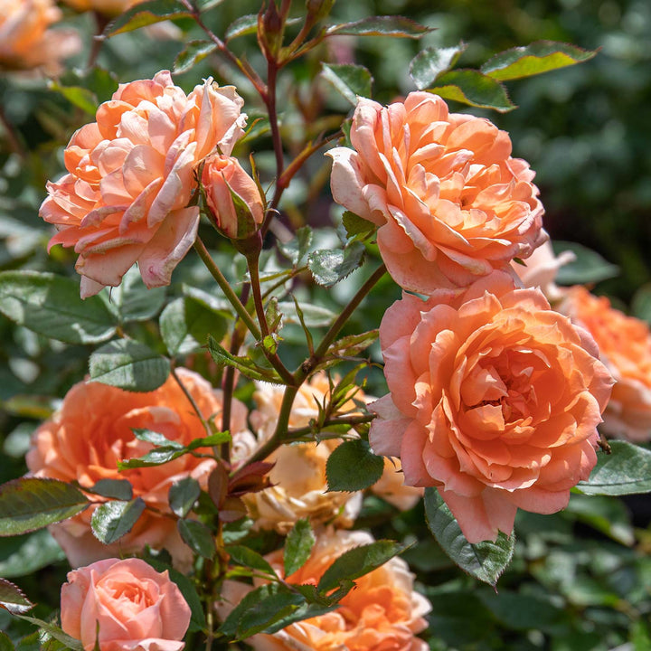 Beautiful full-petalled flowers that are vibrant peach-orange colour and have a wonderful light to medium fragrance with a spicy underlay.