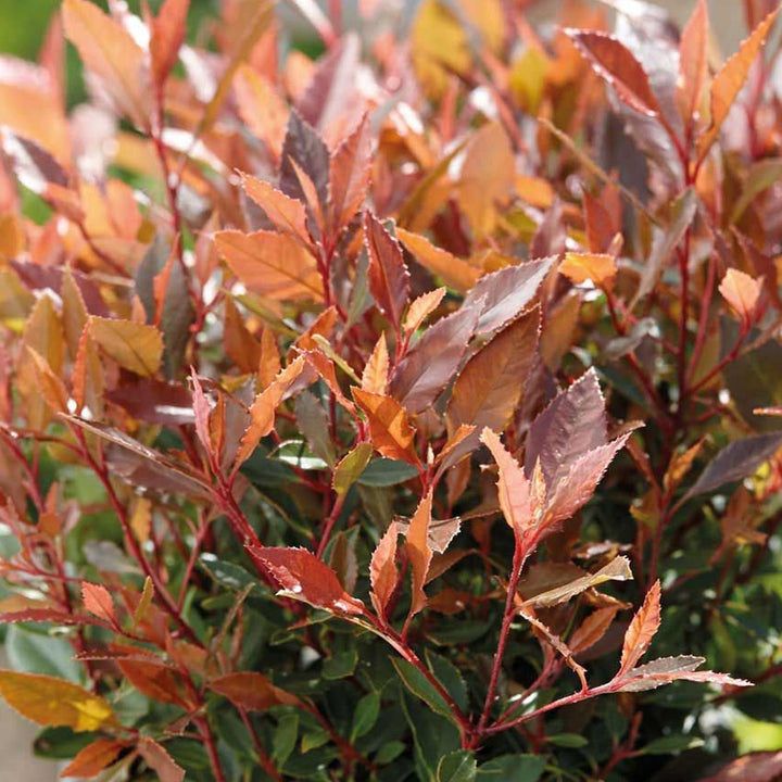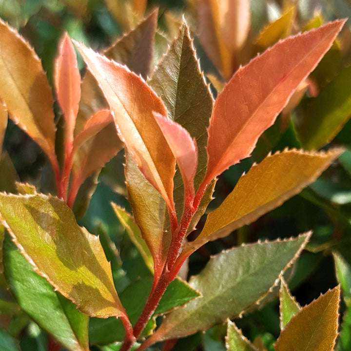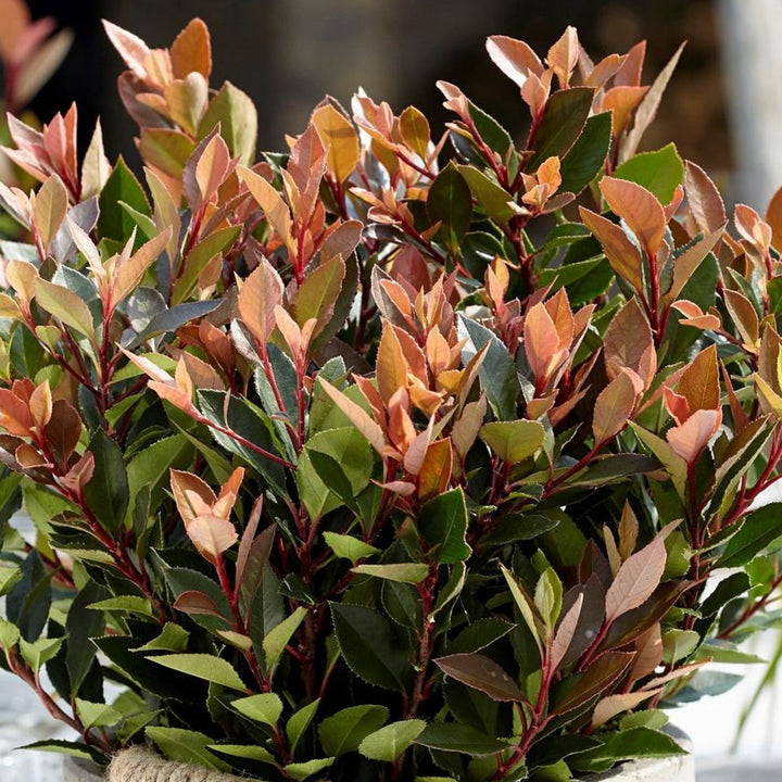 A Photinia Chico patio tree is an outstanding choice to grow in your garden. Not only is it evergreen, meaning it brings interest all-year-round, but the foliage changes colour as the seasons progress. It will initially be a reddish-bronze when young in Springtime, before gaining a green tone throughout each leaf in Autumn and Winter. White flowers bloom in Spring as well, giving this Photinia many ways to stand out throughout the year!
