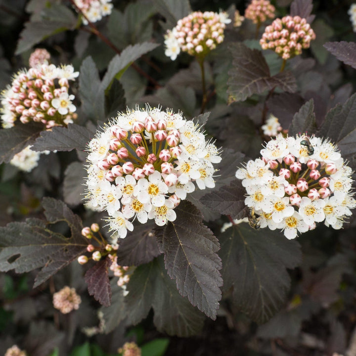 - This plant provides colour all year round! Rich purple foliage grows on graceful arching branches, with pink-flushed white flowers in early summer. These are followed by glossy red seedheads in autumn