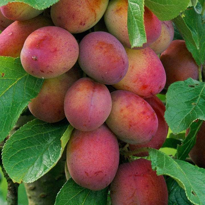 Prunus domestica Plum Trees are a hardy variety that produces reliable, heavy crops of fruit. They can tolerate most soil types and will look great in almost any garden setting, as well as a lone standing tree on your patio.