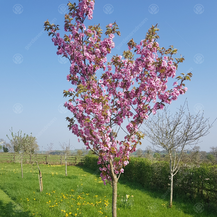 The Prunus ‘Beni-yutaka’ more commonly known as the Japanese Flowering Cherry Tree is a deciduous tree. This variety has green foliage that turns red in the Autumn. Large, pink umbrella-shaped flowers that open in Spring. These flowers are fragrant and appear in large clusters. The Prunus ‘Beni-yutaka’ has a spreading habit; this variety is hardy and will thrive in most soil types. The Japanese Flowering Cherry Tree is best planted in a full sun or partially shaded location.