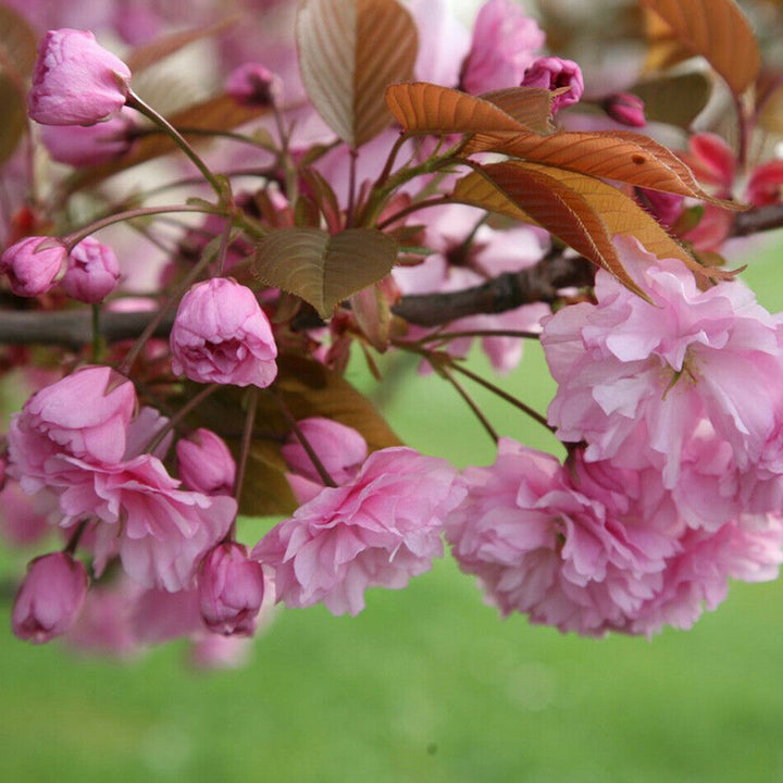 Prunus 'Kanzan' is a beautiful ornamental tree that has gorgeous coppery-brown foliage which grows in a spherical shape. During Spring and Summer, they will bloom deep purplish-pink flowers that will brighten up your patio, border, mixed containers and small garden - making it very pleasing to the eye. Prunus plants are fairly low maintenance and perfect for beginners.