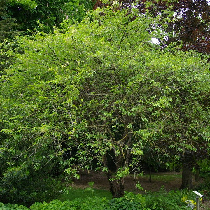 Also known as the Tibetan Cherry tree, the pointy leaves of serrula are deciduous and elliptic, yellow-green when young but mature to dark green later. Its small cupped, white flowers grow in umbels in April to May. You can spot some rare, inconspicuous red miniature cherries from August. However, the highlight of this cherry is its ornamental bark with glossy-mahogany brown to copper-red colour. It smoothly peels off horizontally in paper-thin strips.