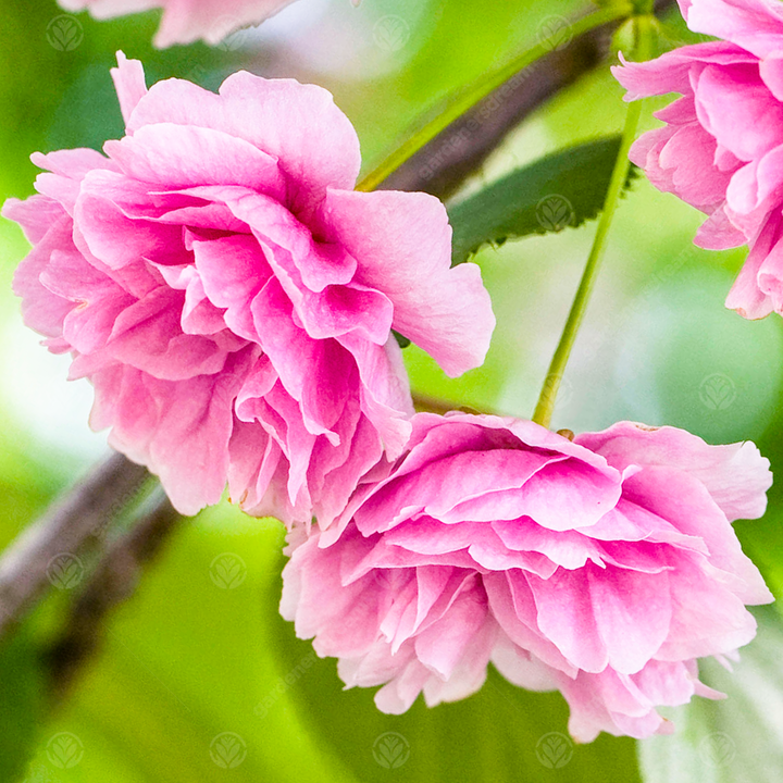 If you love blossoms and want to have your garden adorned with them as long as possible, the Prunus 'Shirofugen' is a late-flowering Cherry tree. It is often the last to bloom, and the stunning double white flowers will remain on the branches well into June. It offers big, white blooms that open from pink buds and hang in clusters from long stalks that cover the branches. As the blossoms mature, the colour deepens into a purplish-pink.