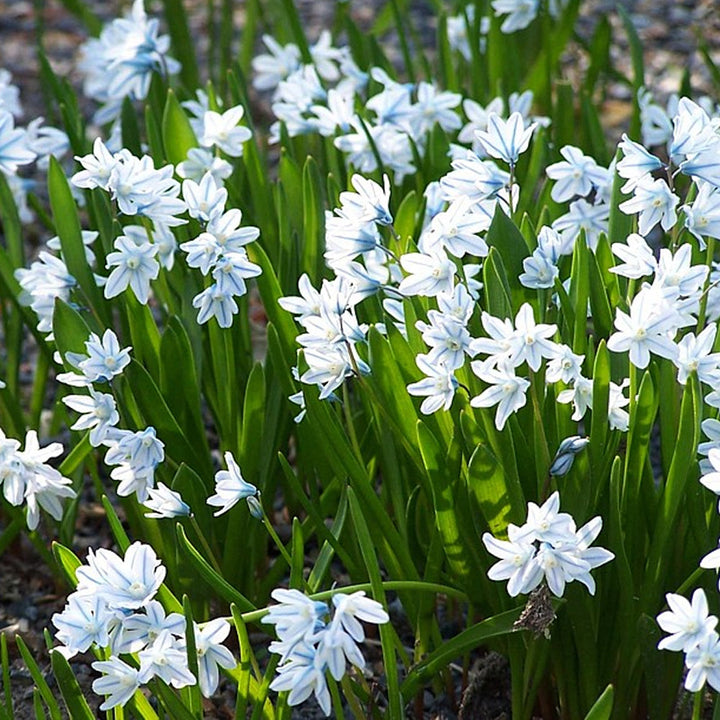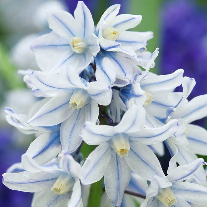 Puschkinia are a little known spring bulb, however, it is one of the easiest to grow and are very reliable. They produce dainty white flowers with a blue stripe effect