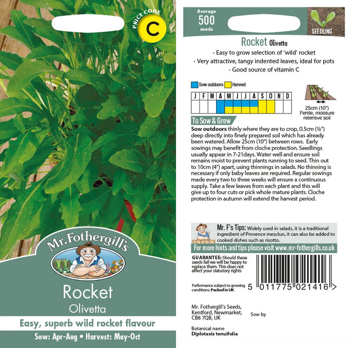 A selection of 'wild' rocket, picked for its long season and vigorous, erect leaves that have an excellent flavour and attractive appearance. The tangy leaves add pizzazz to everyday salads and are delicious wilted into such dishes as pastas or risottos.