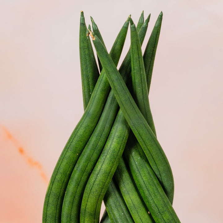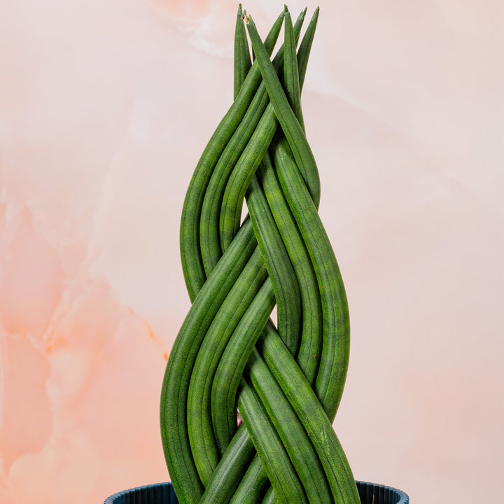 Sansevieria Twister is perhaps the best member of the Sansevieria genus to represent the plants' common name of Snake Plant. The foliage of the plant wraps round in tremendous fashion, making it not only very eye-catching and appealing, but also very reliable and sturdy for indoor environments. As an indoor plant, it will appreciate locations where bright, indirect light are present. You can then water the plant when the top soil is dry to touch, up to twice a month in all seasons except Winter when this can reduce to just once.