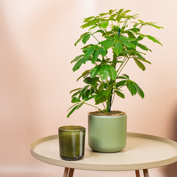 Schefflera Nora is a dwarf umbrella plant that is very easy to care for. It requires little maintenance and is suitable for sitting in light or partial shade, which gives it many more options for placement. Nora is a timeless and admired plant, whether that be in a home, office or other environment. It also offers itself as an air-purifying plant, giving it another string to its bow - being an environmentally-friendly option for your household.