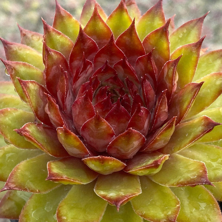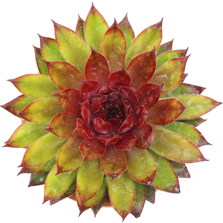 Sempervivum Pineapple Paradise, commonly known as Hen & Chicks, is a very colourful succulent plant. It has evergreen foliage that will maintain its colour all-year-round. Bright green-yellow is shown from the centre, with a cherry red filling out the leaf tips. It is great for accompanying plants in rockeries and patios. These hardy plants will also last throughout many weather conditions, making it low maintenance and great for beginner gardeners.