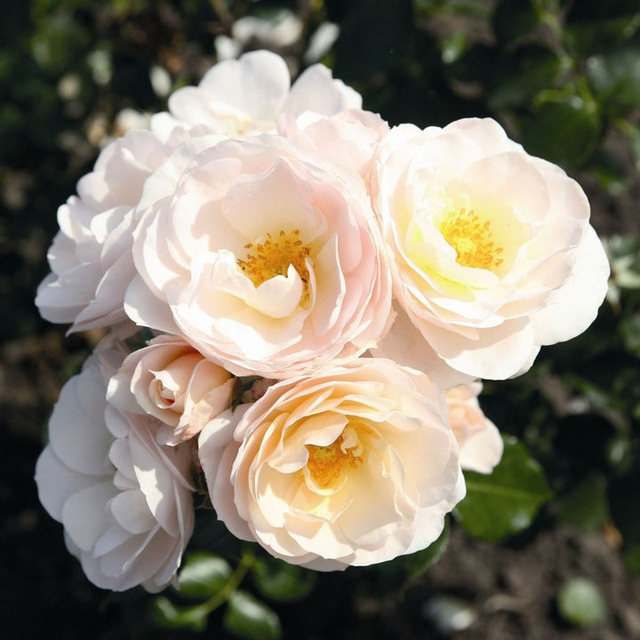 - A very floriferous bedding rose with medium sized flowers that open up in a soft apricot shade before turning creamy white