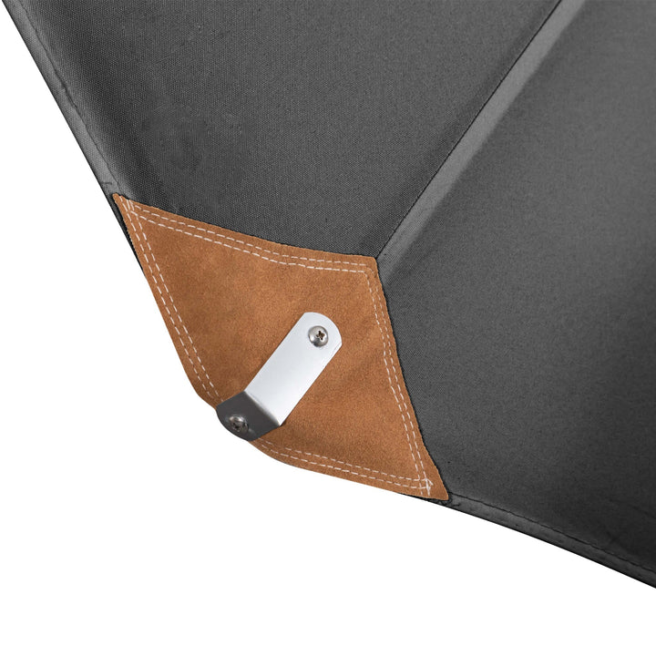 The canopy is manufactured from a 230gsm polyester canopy which is rot resistant, however we recommend our Golden Care Fabrics & Upholstery Care Kit for regular cleaning, to prevent stains and protect against the elements. In addition, the leather overlay and metal fixings where the rib meets the pocket will stop the ribs from damaging the canopy.
