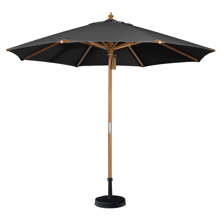 The Styx 3m Round Deluxe Wooden Parasol in Grey is a sturdy parasol that is easy to use thanks to the simple double pulley rope system.