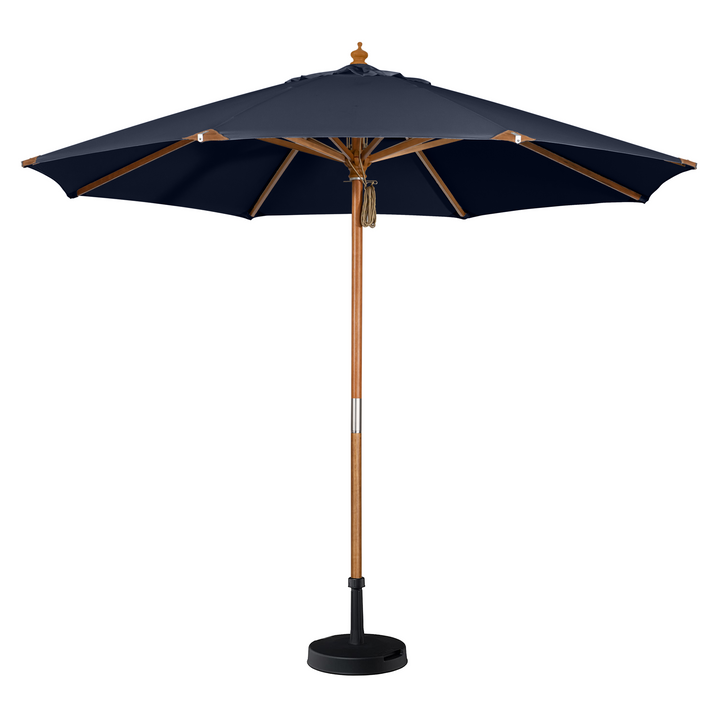 The Styx 3m Round Deluxe Wooden Parasol in Navy is a sturdy parasol that is easy to use thanks to the simple double pulley rope system.