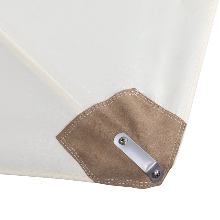 The canopy is manufactured from a 230gsm polyester canopy which is rot resistant, however we recommend our Golden Care Fabrics & Upholstery Care Kit for regular cleaning, to prevent stains and protect against the elements. In addition, the leather overlay and metal fixings where the rib meets the pocket will stop the ribs from damaging the canopy.