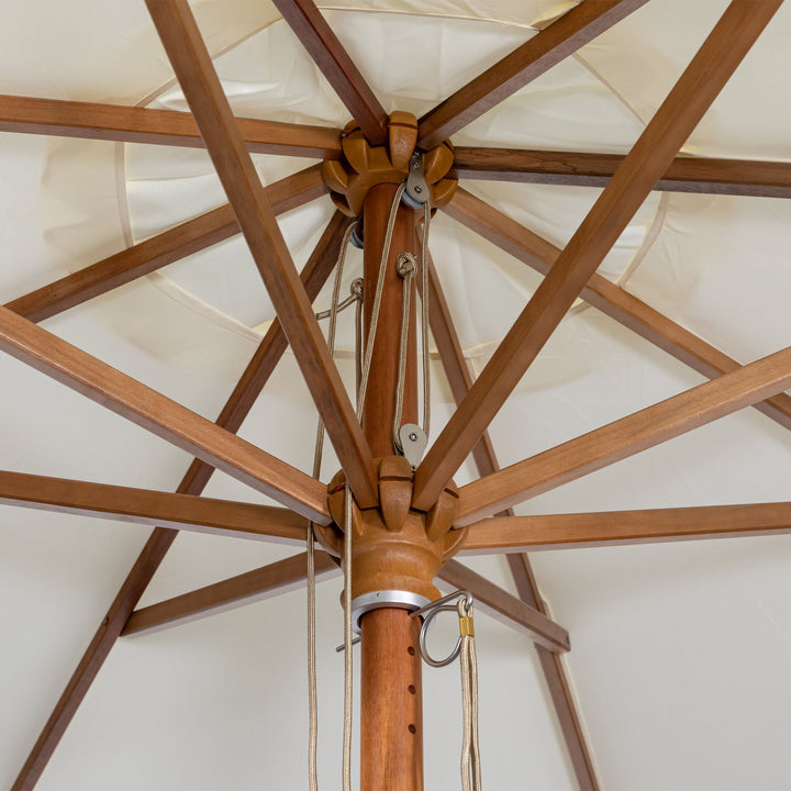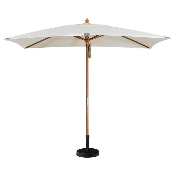 The Styx 3m X 2m Rectangular Deluxe Wooden Parasol in Beige is a sturdy parasol that is easy to use thanks to the simple double pulley rope system.