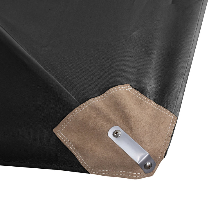 The canopy is manufactured from a 230gsm polyester canopy which is rot resistant, however we recommend our Golden Care Fabrics & Upholstery Care Kit for regular cleaning, to prevent stains and protect against the elements. In addition, the leather overlay and metal fixings where the rib meets the pocket will stop the ribs from damaging the canopy.