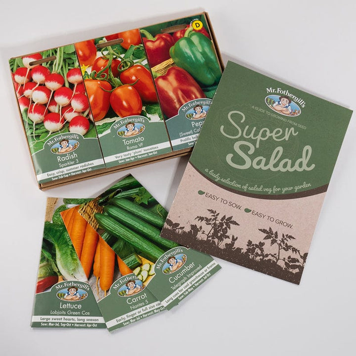 This Seedbox contains 6 varieties: Carrot, Cucumber, Lettuce, Radish, Pepper and Tomato.