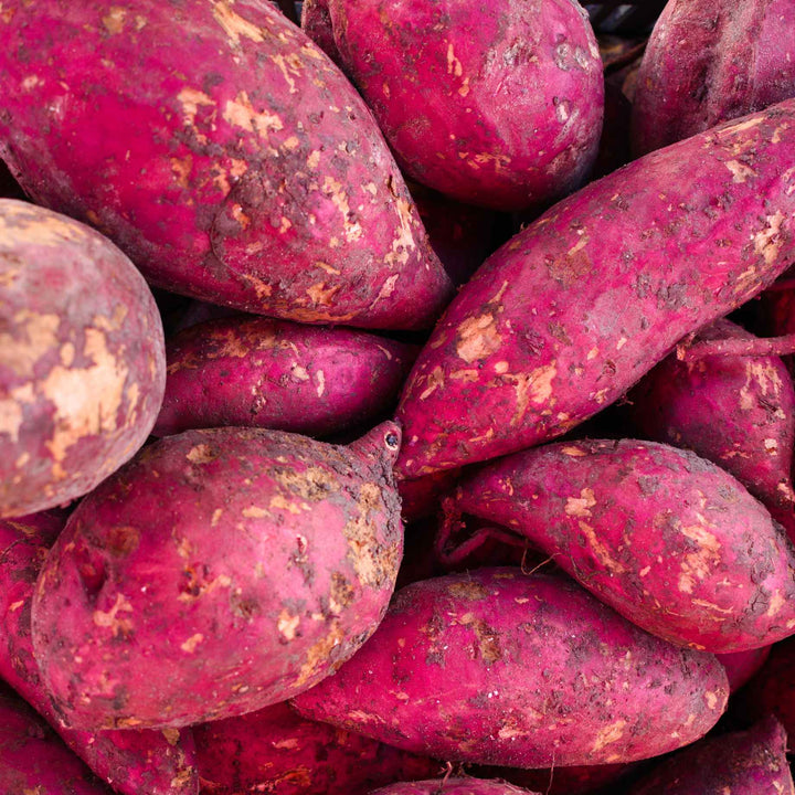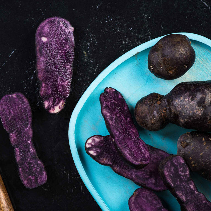- The purple potato that tastes as sweet as it looks! Purple skin and flesh that keeps its colour after cooking