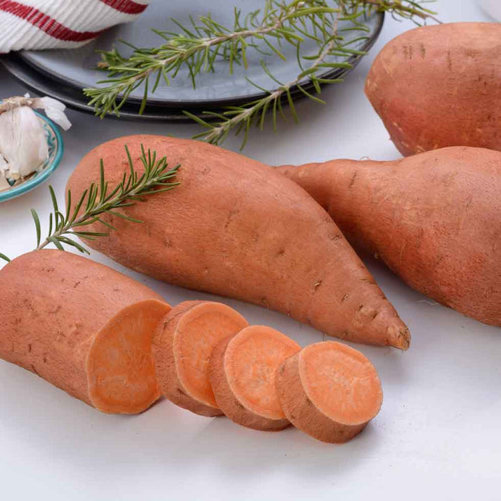 Sweet potato ‘Orleans’ is an improved variety of the popular ‘Beauregard’ sweet potato, producing top-quality tubers with red skins, orange flesh and a sweet flavour. Roasted, boiled, mashed or even baked, they’re a delicious addition to your kitchen repertoire!