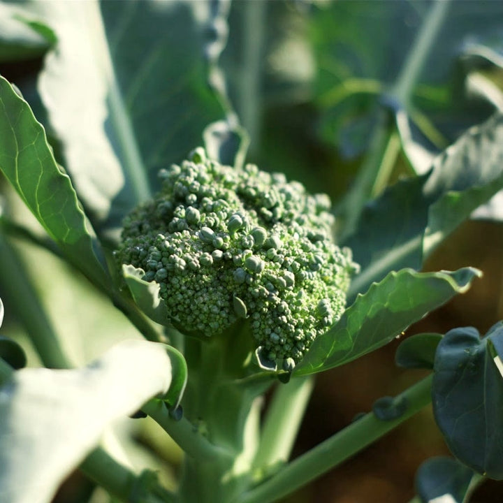 - Deep green, compact broccoli plants with deep green leaves and small crunchy florets and side stems