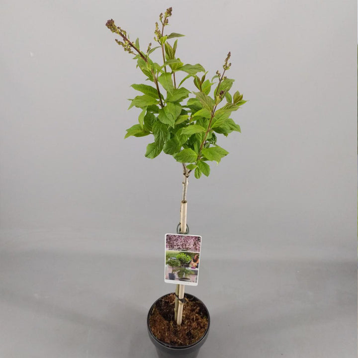 Syringa vulgaris 'Minuet' is a stunning ornamental tree that has gorgeous pale pink flowers with hints of white and gree around which grows on a unique 'lollipop' straight standard stem. These deciduous trees are fairly low maintenance and only require light pruning to remove any dead or damaged branches. Once planted, they will require regular watering through the Spring/Summer season.