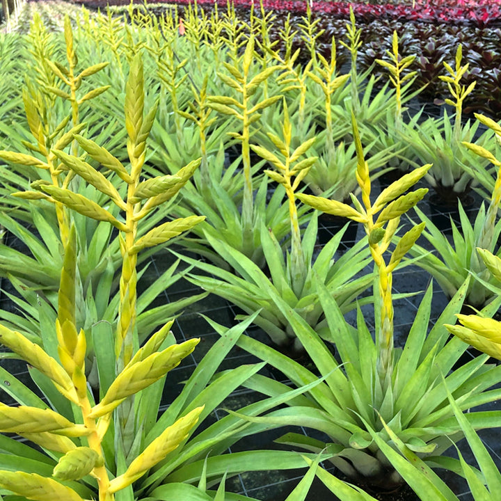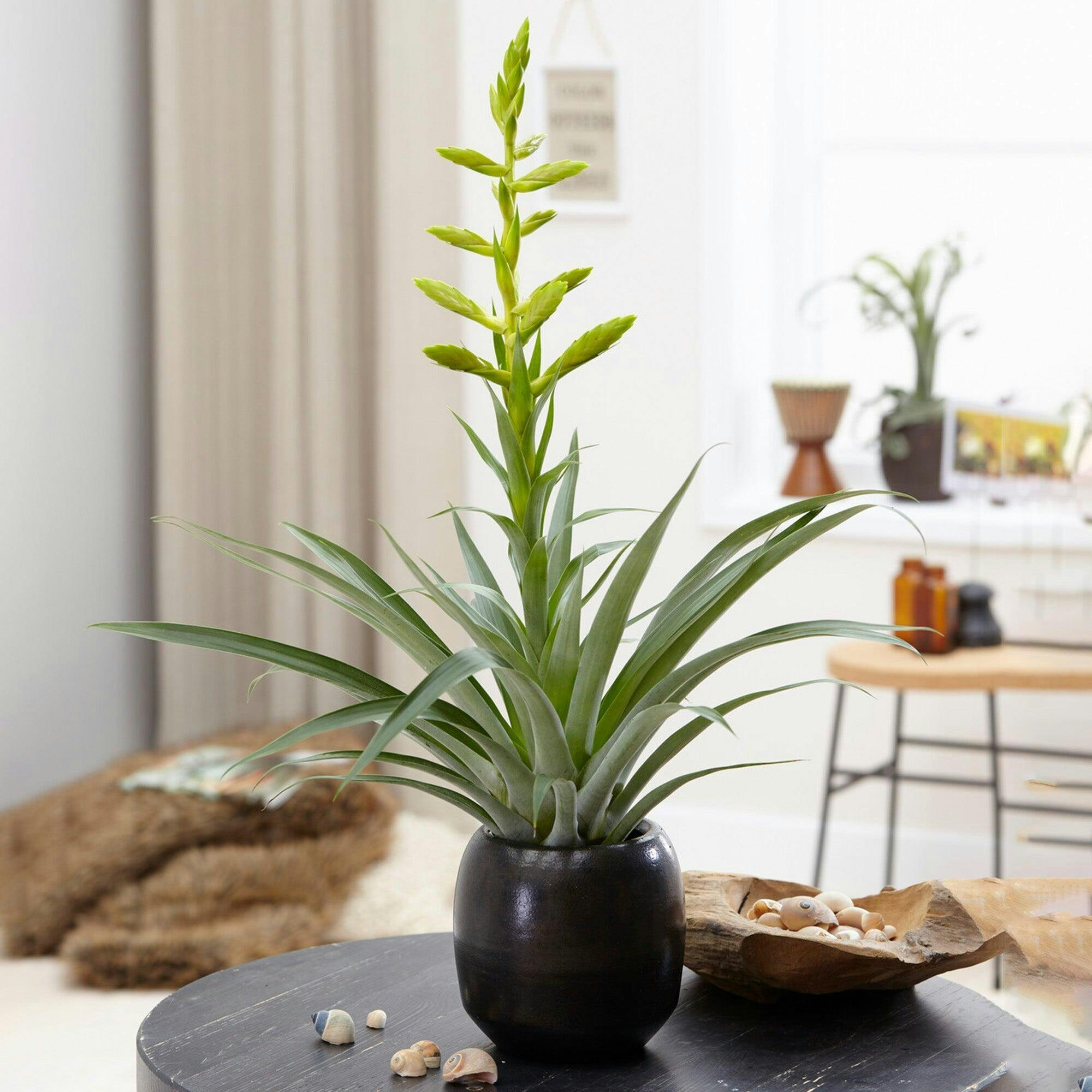 Tillandsias are easy to care for. They will appreciate an area of partial shade to sit in. Being tolerant to moist soil types makes any repotting process simple. Water the plant so its soil is kept moist and well-drained, whilst also ensuring the plant receives a regular mist during Summer.