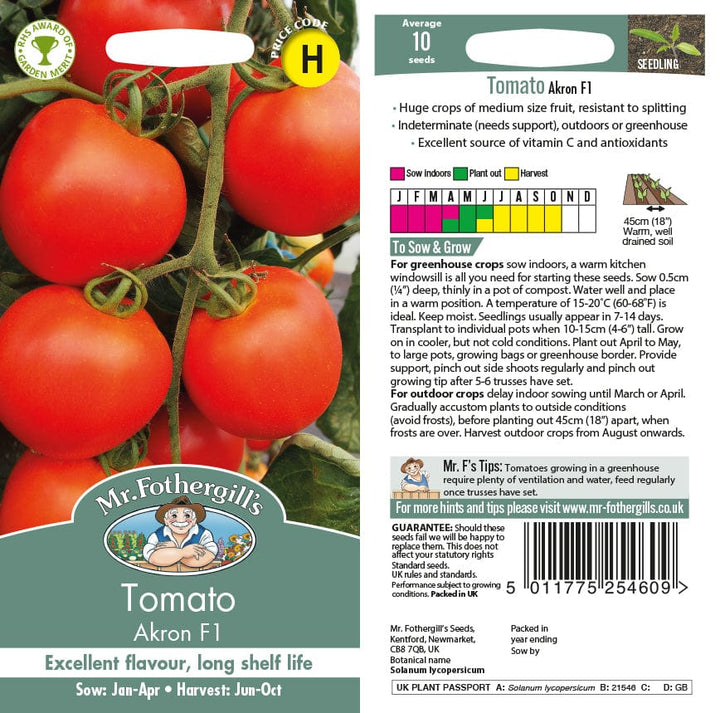 This heavy weight standard tom produces high crops of medium sized fruits which are resistant to splitting and other diseases. An excellent all-rounder it was a top performer on our recent trials. Grow either outdoors or in the greenhouse. Excellent source of vitamin C and antioxidants. Indeterminate (needs support).