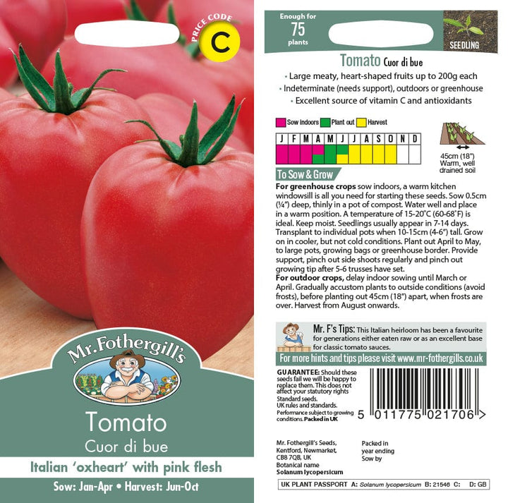 Large, meaty, heart shaped fruits weigh up to 200g each and have thick fleshy walls, ideal for sauces, pastas and curries as well as salads and sandwiches. Suitable for growing in a greenhouse or outside in a sheltered location. Indeterminate.