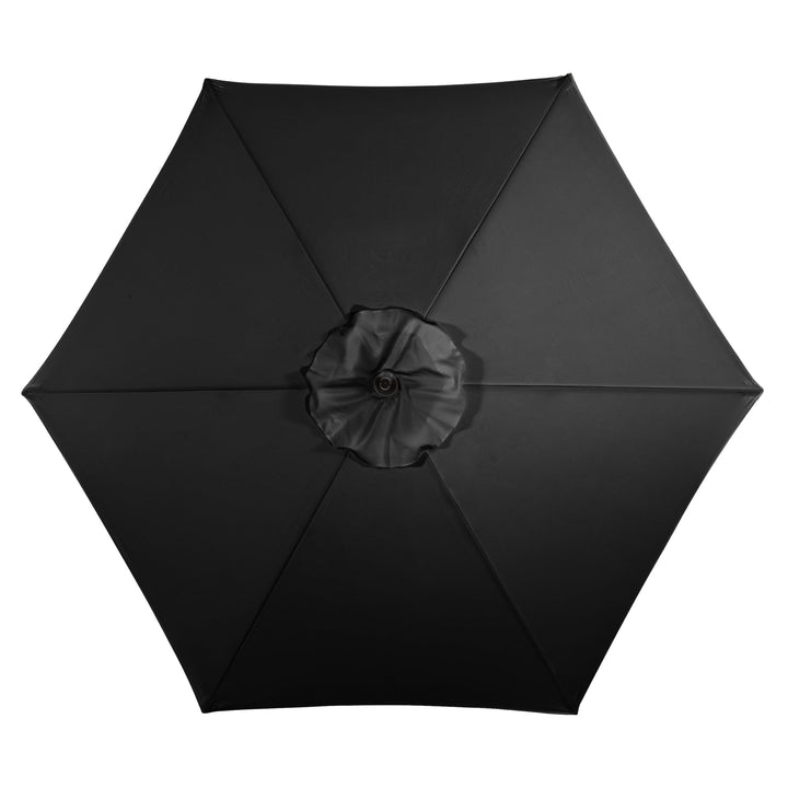 The Triton 3m Aluminium Parasol in Black, operated by a crank handle system that can be used with either a Dining Table or as a free standing parasol.