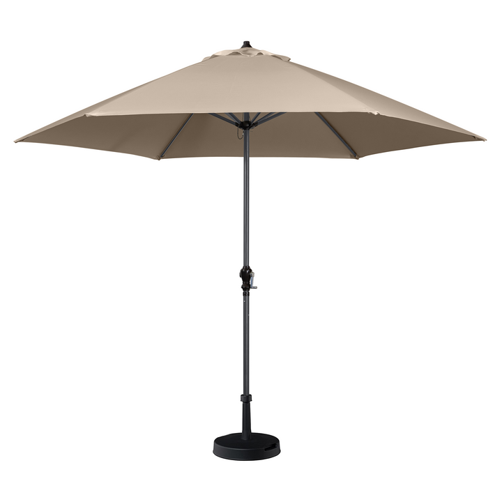 Please note the weighted base is not included with the parasol. In addition a minimum weight of 40kg is required if the parasol is to be used free standing. If the parasol is going to be used in conjunction with a table then a 15kg base will suffice.