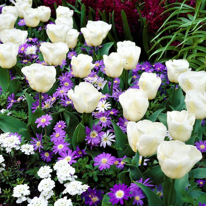 Create a striking spring floral display with this Patio Pack of Anemone and Tulip bulbs. The different flowers complement each other beautifully, with bold blue and soft white hues offering a dramatic contrast.