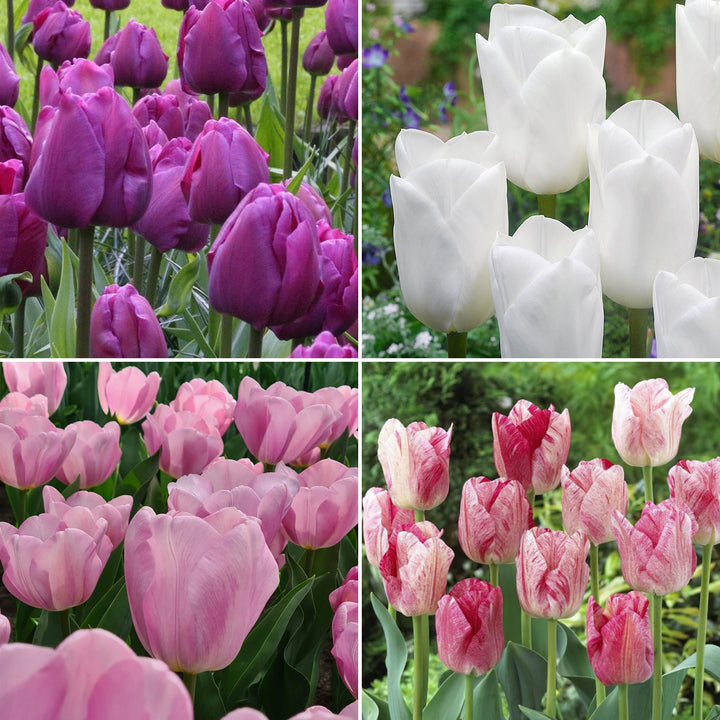 Add a gorgeous mix of pink, white and purple colour into your garden with this lovely blend of Tulip garden bulbs. Whilst creating a striking outdoor feature, you will also gain great satisfaction from the growth journey of bulb to plant once each variety fully flourishes.