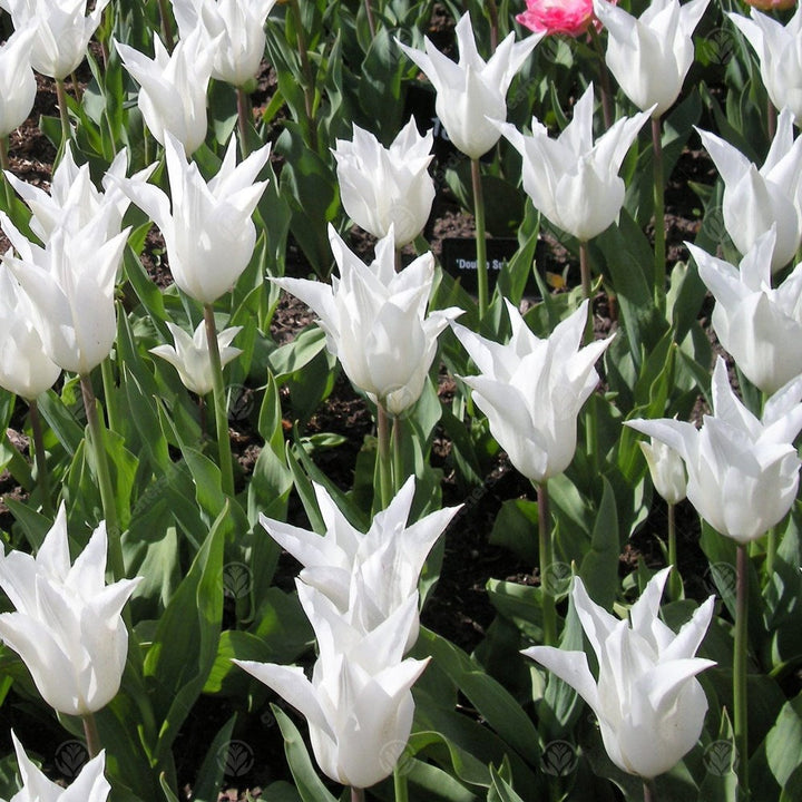 Trés Chic is a division 6, Lily-flowering Tulip with a flowerhead that is tapered in the middle and then flares out towards the tips with reflexed, cream to brilliant white petals.