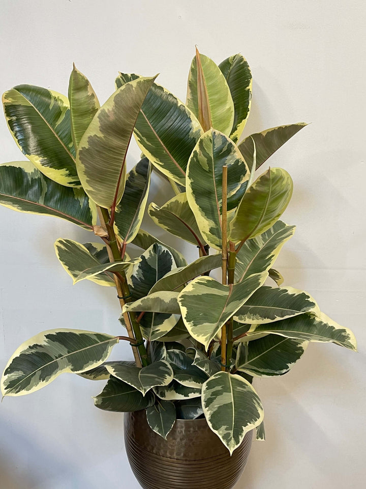 Variegated Rubber plant, Ficus Elastica, Tineke 80-90cm, 3 Stems
