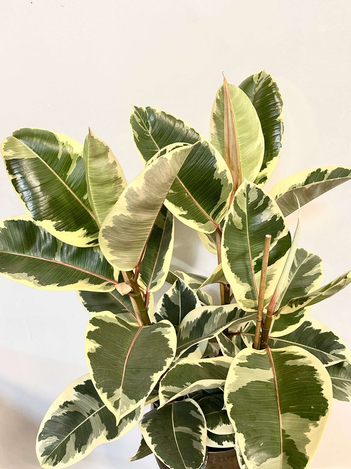 Make a bold botanical statement with the striking Ficus Elastica 'Tineke', also known as the Variegated Rubber Plant. This beauty features large, glossy leaves marbled with creamy white, soft green, and blush pink tones – a real showstopper for any space. Tineke isn’t just pretty – it’s also low-maintenance and air-purifying, making it perfect for both new and seasoned plant lovers.