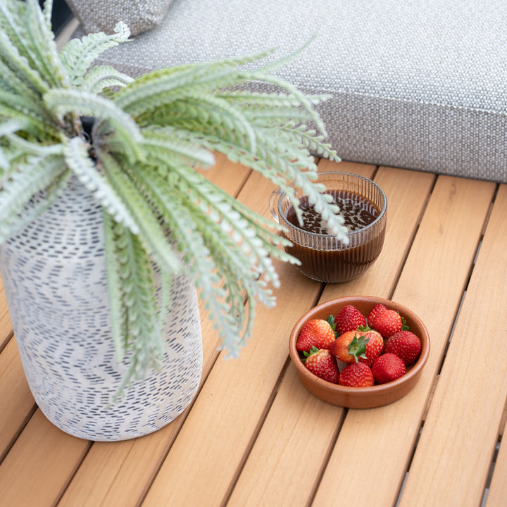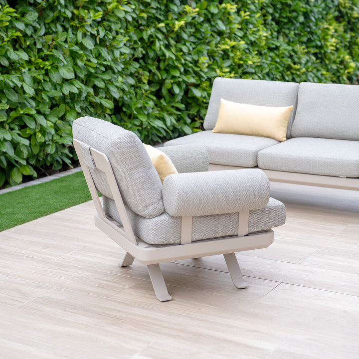 The Vienna furniture frames are manufactured from rust-proof and ultra-resilient aluminium. The frames are complemented by beautiful and luxurious cushions made from Olefin fabric. This gorgeous material is both resistant to fading through UV and water repellent. So, come rain or sunshine, your furniture will retain its brand-new look even after years of use.