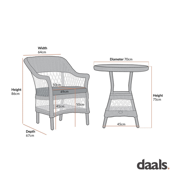 - Featuring robust round poly rattan weaves hand-wrapped around aluminium frame, our Willowbrook bistro set offers a perfect spot to enjoy sunshine with your loved one.