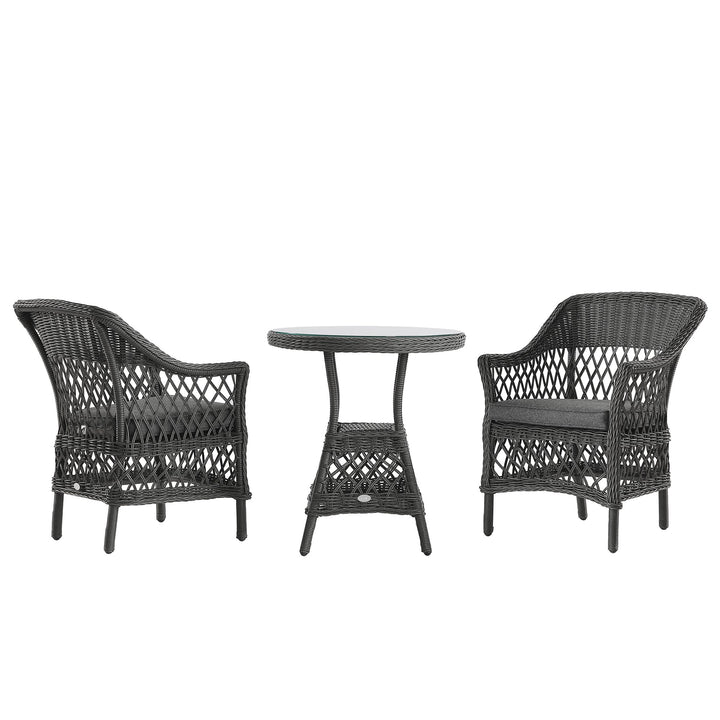 Willowbrook Lattice Weave Rattan Bistro Set, Dark Grey