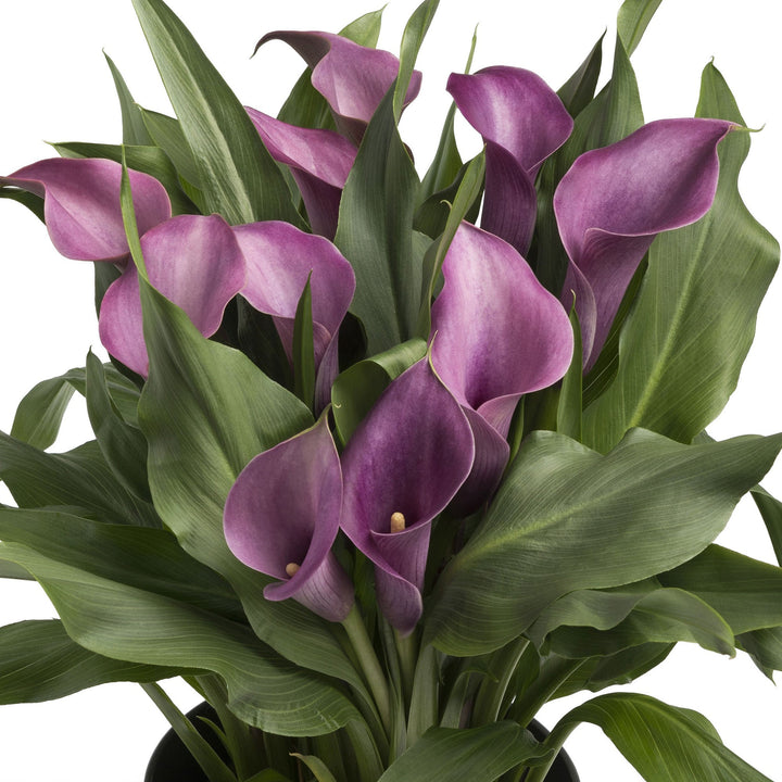 Zantedeschia Grape Velvet, commonly known as the Grape Velvet Calla Lily, features rich, deep purple blooms with a luxurious velvety finish. This elegant summer-flowering plant creates a striking display in garden beds, borders, or patio containers. With its refined appearance, it makes an eye-catching addition to any garden.