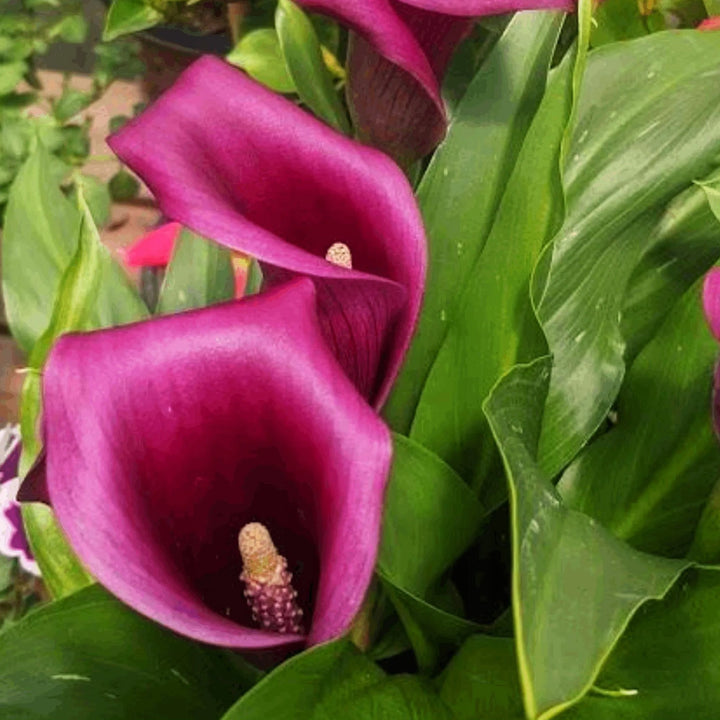 In colder climates, lift the tubers before frost, allowing them to dry thoroughly before storing in a cool, frost-free location for winter. Replant in spring for another stunning display. Zantedeschia Grape Velvet is a perfect choice for gardeners looking to add bold, dramatic colour to their summer landscapes.