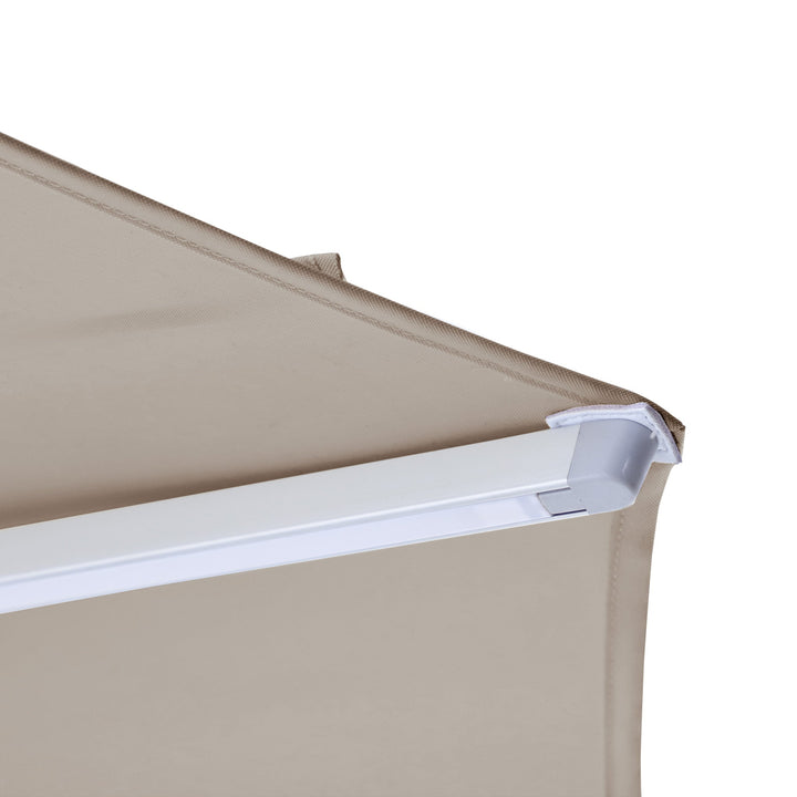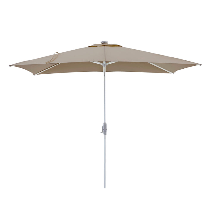 Equipped with integrated LED lights, this parasol offers warm white illumination, lasting up to 8 hours when fully charged. With a UV protection rating of 50+, you can relax knowing you and your loved ones are well-shielded from the sun's rays. Raising the canopy is a breeze—simply turn the crank handle and watch your parasol come to life.