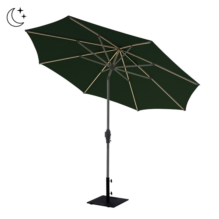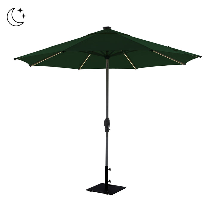 Zelos 3m Round Parasol with LED Lighting in Green