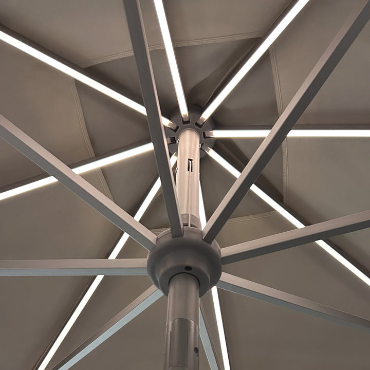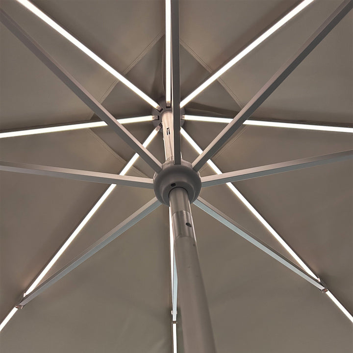 Please note: Some images in the carousel showcase the parasol at night to display the LED Lights, which may affect its appearance however, the colour remains unchanged.